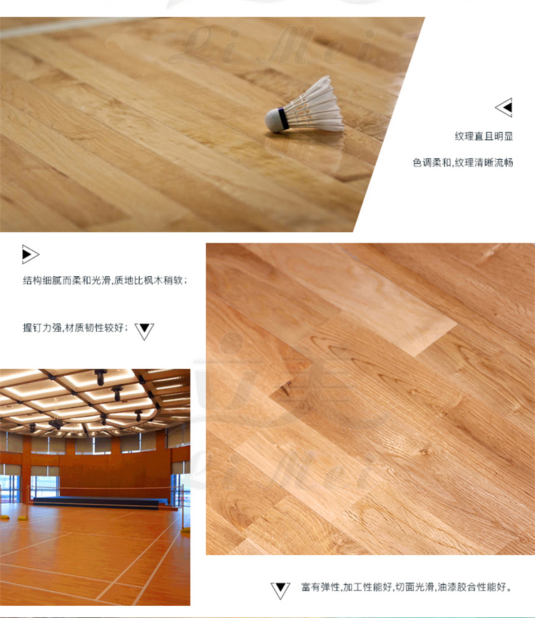 羽毛球馆用木地板大多选用以枫木为主的面板,其主要优点如下:
