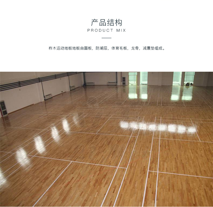 2、体育木地板枫木是长纤维树种,具有其它硬木不可比拟的坚韧性,横纹、竖纹抗剪性能均为更佳,加工使用中不会产生木刺,可以保护运动员不受伤害。