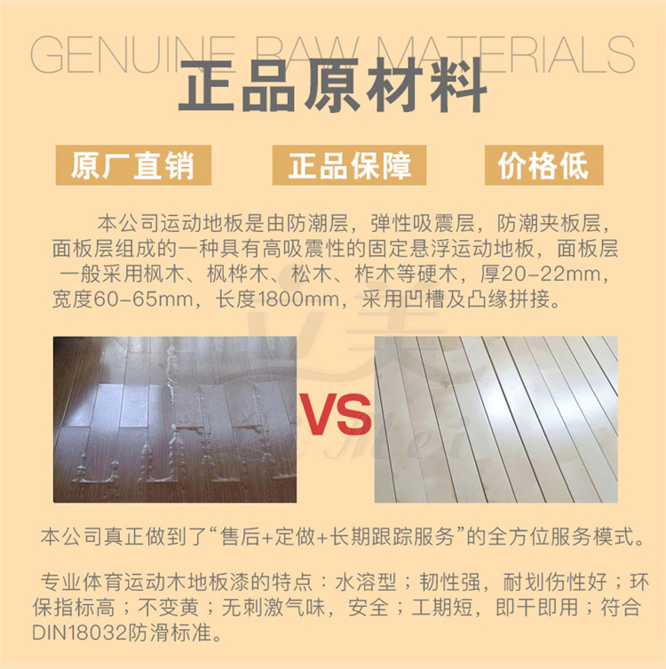 3、龙骨层,安装在毛板与弹性垫之间,起支撑作用,龙骨一般选用落叶松或樟子松。落叶松木材略重而坚实,抗压及抗弯曲的强度大,而且耐腐朽。硬度中等,心材黄褐色至红褐色,纹理直,结构细密,耐久用;樟子松木材淡红褐色,边材淡黄褐色,材质较细,纹理直,干燥、机械加工、防腐处理性能较好,防腐后易于油漆和染色。多层龙骨间需要加弹性垫层。
